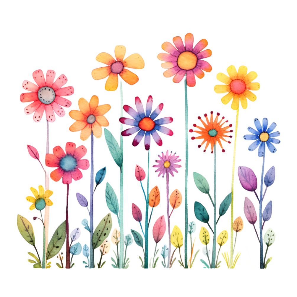 Cute Wildflowers Illustrated Flowers Watercolor Clipart